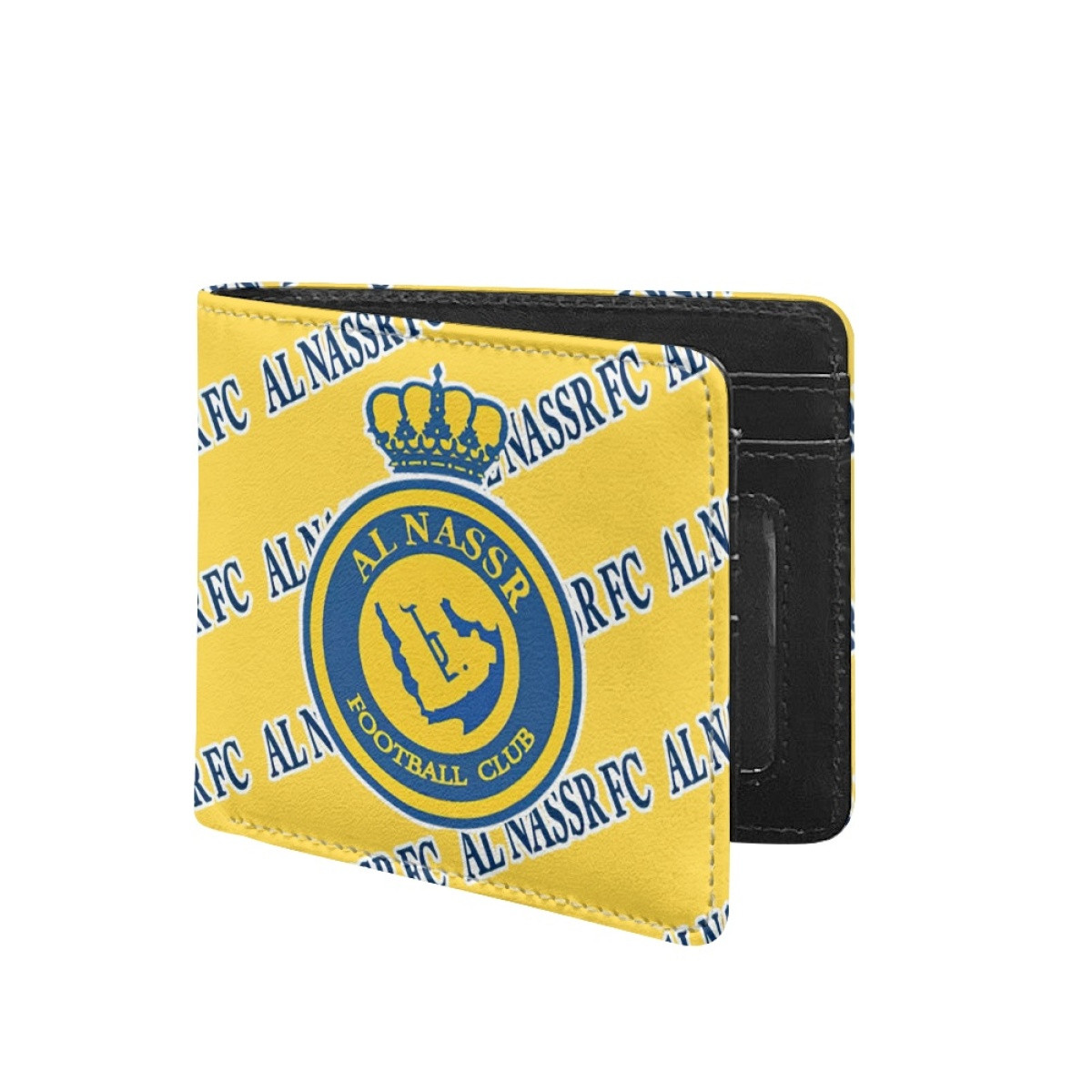 Shop the AL Nassr FC Football Club Bifold Wallet with the iconic Nassr Football Club Medley Monogram Wordmark. Stylishly show off your support for your favorite team with this sleek accessory.This bifold wallet is crafted from synthetic leather for an elegant and premium feel. Featuring 3 card slots, 3 ID Windows, and 3 cash pockets, for superior organization. Ideal for both kids and adults.Features:- 3 Card Slots / 3 ID Windows- 3 Cash Pockets- Material: Synthetic leather- Dimensions folded11.8cm x 9.6cm x 1.8cm4.7 inches x 3.8 inches x 0.7 inches- Dimensions unfolded10cm x 15cm4 inches x 6 inches
