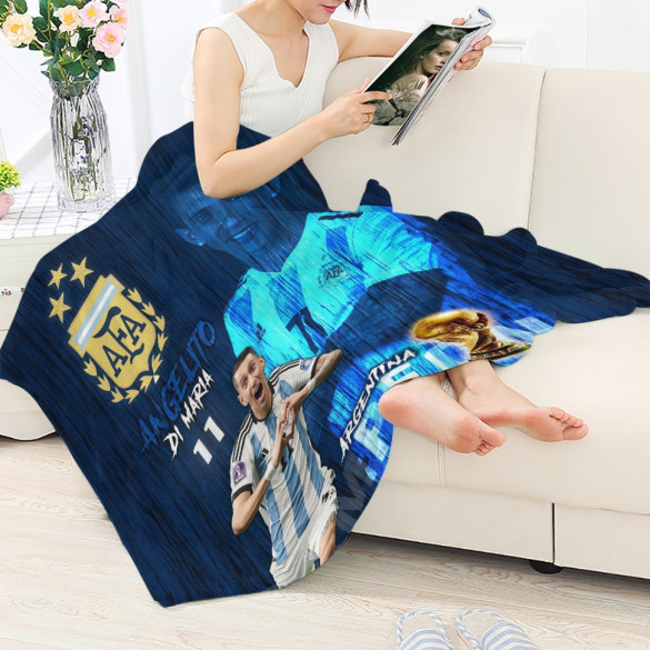 Shop now for the Angel Di Maria Blanket Throw featuring his iconic number 11 goal celebration from the 2022 World Cup. Stay cozy and show your support for your favorite player.Keep cozy and warm during the colder months with this soft throw blanket. Suitable as a throw or bed cover, this blanket gives any bedroom or living room an instant refresh. Our soft cozy throw blanket is made of high quality polyester and coral fleece, which is super soft, lightweight, anti-wrinkle, and non-shedding. Features:- Suitable as a throw or bed cover- Available in multiple sizes- Made of polyester and coral fleece