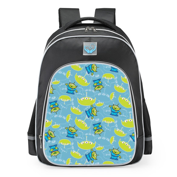 Disney Toy Story Alien Mark School Backpack. Adjustable shoulder strap. Great inexpensive durable backpack for college, high school or elementary school. Doubles as an overnight bag or travel bag for short trips or for a youth suitcase.Size Inches: 12x8x16.5 (Width x Depth x Height)Size cm: 30x20x42 (Width x Depth x Height) Volume: 27LFabric: 100% Polyester Oxford ClothWeight: 460gIf you're interested in customization or making your own backpack, please click the DIY icon at the top of our site.