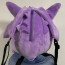 Gengar From Pokemon 3D Plush Backpack. The Gengar 3D Plush Backpack is designed to look like the iconic Pokemon, Gengar. It has a purple body, a large grinning mouth, and Orange eyes.