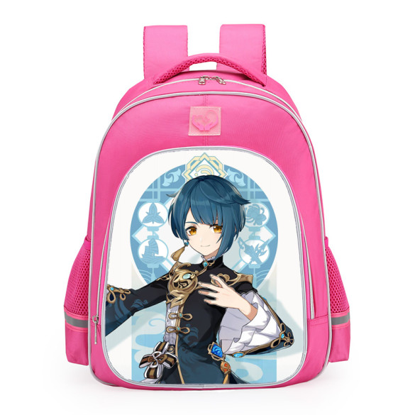 Genshin Impact Xingqiu School Backpack. Made of water resistant and durable polyester fabric, high-density nylon lining for better tear resistance, the heavy duty backpack with metal zippers ensures daily long lasting use.