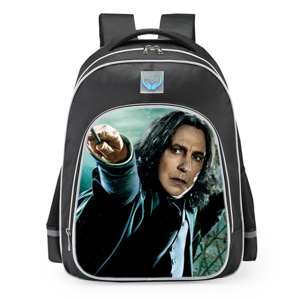 Harry Potter Professor Severus Snape School Backpack. The toddler backpack presents a main compartment with cotton interior, which is large capacity and long-lasting. Perfectly for keeping and organizing books, toys, pencils and snacks, etc. With the matching pullers and smooth zippers, children could open and close the backpack easily. The front pocket is for keeping the small stuffs easy to reach.Size Inches: 12x8x16.5 (Width x Depth x Height)Size cm: 30x20x42 (Width x Depth x Height) Volume: 27LFabric: 100% Polyester Oxford ClothWeight: 460gIf you're interested in customization or making your own backpack, please click the DIY icon at the top of our site.