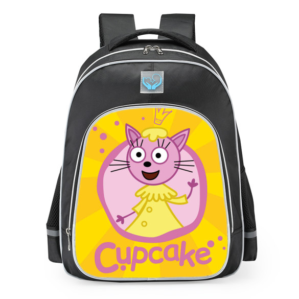 Kid E Cats Cupcake School Backpack. The preschool backpack features easy to open and close zipper tags, a main zippered pocket, two side pocket for water and umbrella, It's the most efficient and playfully designed collection around. Smooth zippers for the little kids to open and close easily.Size Inches: 12x8x16.5 (Width x Depth x Height)Size cm: 30x20x42 (Width x Depth x Height) Volume: 27LFabric: 100% Polyester Oxford ClothWeight: 460gIf you're interested in customization or making your own backpack, please click the DIY icon at the top of our site.