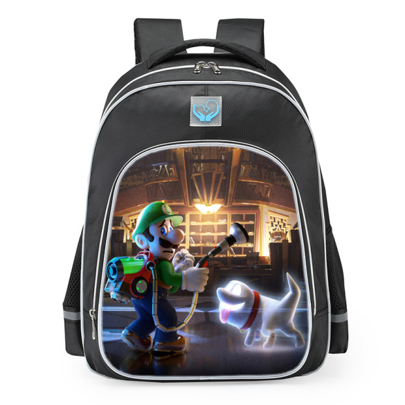 Luigi’s Mansion 3 Luigi And Polterpup School Backpack. This school bag is designed in durable fabric with adjustable foam padded shoulder straps to relieve stress from your child's shoulders, and a padded back for added comfort.