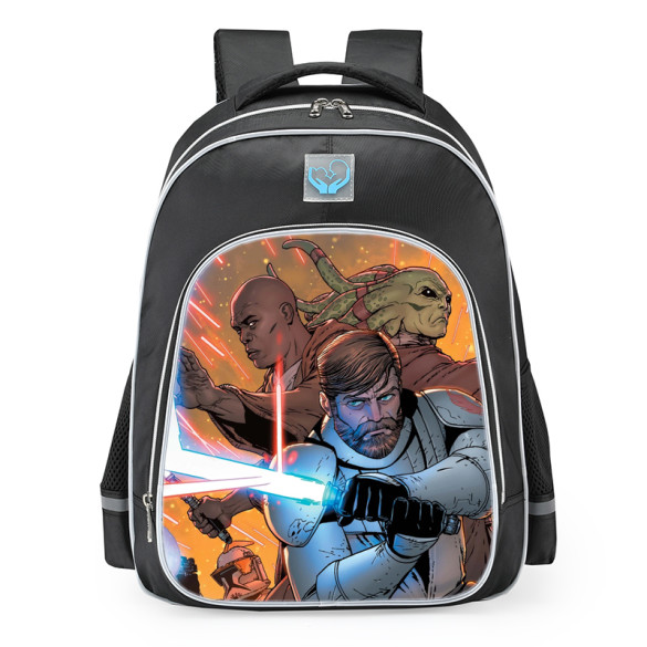 Marvel Star Wars Obi-Wan Kenobi School Backpack. This quality book bag can be hung up when not in use by the padded handle. This school bag is designed with adjustable foam padded shoulder straps to relieve stress from your child's shoulders, and a padded back for added comfort.Size Inches: 12x8x16.5 (Width x Depth x Height)Size cm: 30x20x42 (Width x Depth x Height) Volume: 27LFabric: 100% Polyester Oxford ClothWeight: 460gIf you're interested in customization or making your own backpack, please click the DIY icon at the top of our site.