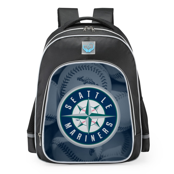 MLB Seattle Mariners Backpack Rucksack. The preschool backpack features easy to open and close zipper tags, a main zippered pocket, two side pockets for water bottle and umbrella, one front zipper pocket for handkerchief, pencils and snacks, etc. The adjustable padded shoulder straps and air mesh cushioned breathable back panel can offer support and comfort while the adjustable chest strap stabilizes the load throughout the day's activities.
