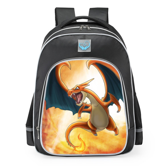 Pokemon Charizard School Backpack. Comfortable airflow back design with thick but soft multi-panel ventilated padding, gives you maximum back support. Breathable and adjustable shoulder straps relieve the stress of shoulder. Foam padded top handle for a long time carry on