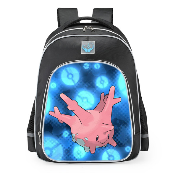 Pokemon Corsola School Backpack. This big school backpack for men with expandable feature offers you more packing capacity than standard laptop backpack. Lightweight classic school backpack for kids. Large capacity main compartment that can fit books and other school supplies.