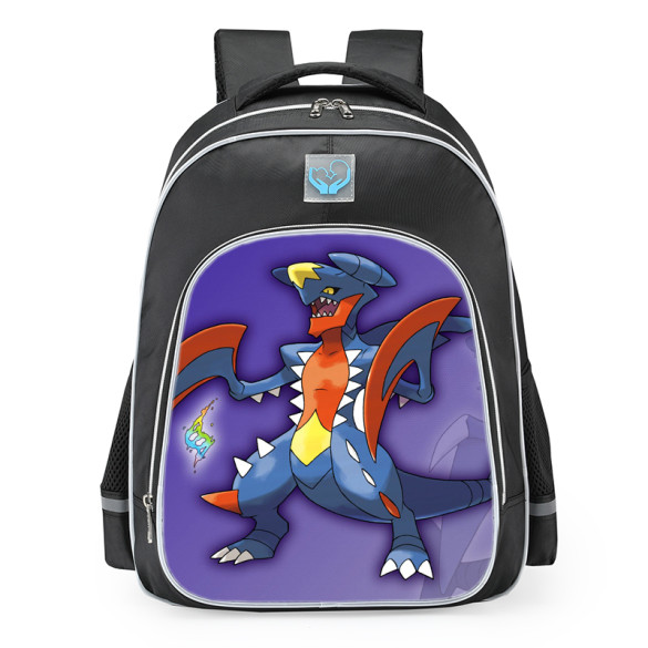 Pokemon Garchomp School Backpack. This quality book bag can be hung up when not in use by the padded handle. This school bag is designed in durable fabric with adjustable foam padded shoulder straps to relieve stress from your child's shoulders, and a padded back for added comfort.Size Inches: 12x8x16.5 (Width x Depth x Height)Size cm: 30x20x42 (Width x Depth x Height) Volume: 27LFabric: 100% Polyester Oxford ClothWeight: 460gIf you're interested in customization or making your own backpack, please click the DIY icon at the top of our site.