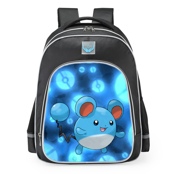 Pokemon Marill School Backpack. Extend two side sealed pockets provide more stable and secure storage than other mesh pockets. Daypacks designed for comfortable all-day carrying with our straight-cut padded shoulder straps, padded back panel & a web haul handle.Size Inches: 12x8x16.5 (Width x Depth x Height)Size cm: 30x20x42 (Width x Depth x Height) Volume: 27LFabric: 100% Polyester Oxford ClothWeight: 460gIf you're interested in customization or making your own backpack, please click the DIY icon at the top of our site.
