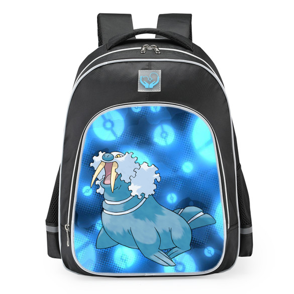 Pokemon Walrein School Backpack. Compression straps are designed to cinch down and secure gear while carrying. Easily attach gear like a lantern or water bottle with the monster hook clip.Size Inches: 12x8x16.5 (Width x Depth x Height)Size cm: 30x20x42 (Width x Depth x Height) Volume: 27LFabric: 100% Polyester Oxford ClothWeight: 460gIf you're interested in customization or making your own backpack, please click the DIY icon at the top of our site.