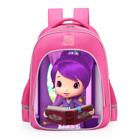 Strawberry Shortcake Plum Pudding School Backpack. Made from strong, non-toxic and water resistant double nylon fabric with covered zips to keep belongings safe from the weather. Perfect for everyday use such as a school backpack or travel day bag.Size Inches: 12x8x16.5 (Width x Depth x Height)Size cm: 30x20x42 (Width x Depth x Height) Volume: 27LFabric: 100% Polyester Oxford ClothWeight: 460gIf you're interested in customization or making your own backpack, please click the DIY icon at the top of our site.