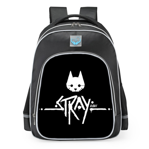 Stray Logo School Backpack. Features a padded tablet sleeve, a large zip-closure front pocket, a zip-closure stash pocket, and two expandable bottle sleeves on the sides.Size Inches: 12x8x16.5 (Width x Depth x Height)Size cm: 30x20x42 (Width x Depth x Height) Volume: 27LFabric: 100% Polyester Oxford ClothWeight: 460gIf you're interested in customization or making your own backpack, please click the DIY icon at the top of our site.