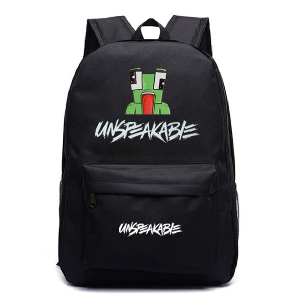 Unspeakable Frog Backpack Rucksack. Unspeakable is a minecraft series comprising of a squad of people doing Minecraft Trolling on their Minecraft Server. The series involves fans, players, YouTubers and trolling. There is no violence, no mature content and is generally, safe for the kids. The frog is the icon of Unspeakable Gaming and represent him as a known figure. Here we have a comfortable backpack rucksack capturing the Unspeakable Frog icon in a black background. Be a part of Unspeakable Gaming gang with this bag. A great bag to carry anywhere for all kind of activities.