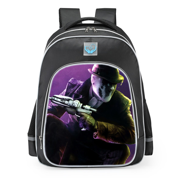Watchmen School Backpack. The bag is designed with front and bottom padding to protect inner contents from any external pressure. The padded air mesh on the back and shoulder straps ensures easy comfort on the shoulder and back.Size Inches: 12x8x16.5 (Width x Depth x Height)Size cm: 30x20x42 (Width x Depth x Height) Volume: 27LFabric: 100% Polyester Oxford ClothWeight: 460gIf you're interested in customization or making your own backpack, please click the DIY icon at the top of our site.