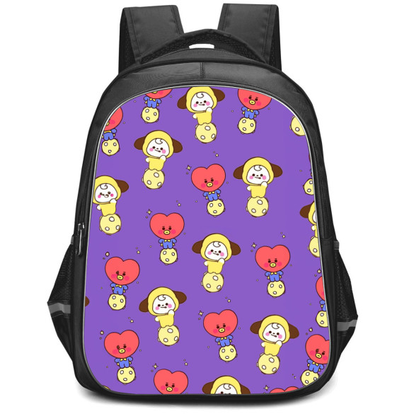 Get ready to rock the hallways with the BT21 Backpack StudentPack featuring enchanting BT21 Tata and captivating Chimmy patterns. This trendy backpack showcases striking art on a vibrant purple background for a stylish statement.Our StudentPack is ultra durable and trendy, designed especially for students both young and old. Featuring one main compartment, a front compartment, and all of the space you could ever imagine. Durable and lightweight, the StudentPack is the perfect throw-on-and-go backpack for students.Features:- Roomy main compartment- Front compartment- 2 mesh pockets on both sides- Built to last, high quality waterproof oxford cloth- Adjustable padded shoulder straps- Front pocket with built in organizer- Padding on the back panel for superior comfort- Padded grab handle on top- High quality metal zips- 100% recycled undyed linerSpecifications:Fabric: 100% Polyester Oxford ClothCapacity: 15L (Small size) / 27L (Large size)Weight: 17.63 oz / 500gDimensions: Large size: 16.5" x 13" x 6.3" / 42 x 33 x 16 cmSmall size: 13" x 11" x 6.3" / 32 x 28 x 16 cm