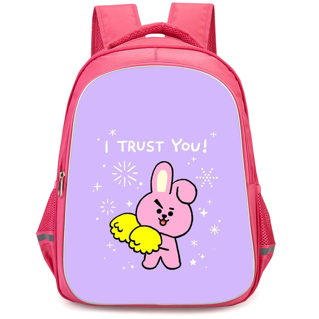 Shop the BT21 Cooky Backpack StudentPack in a vibrant purple hue featuring a Cooky I Trust You poster design. Perfect for students on-the-go.Our StudentPack is ultra durable and trendy, designed especially for students both young and old. Featuring one main compartment, a front compartment, and all of the space you could ever imagine. Durable and lightweight, the StudentPack is the perfect throw-on-and-go backpack for students.Features:- Roomy main compartment- Front compartment- 2 mesh pockets on both sides- Built to last, high quality waterproof oxford cloth- Adjustable padded shoulder straps- Front pocket with built in organizer- Padding on the back panel for superior comfort- Padded grab handle on top- High quality metal zips- 100% recycled undyed linerSpecifications:Fabric: 100% Polyester Oxford ClothCapacity: 15L (Small size) / 27L (Large size)Weight: 17.63 oz / 500gDimensions: Large size: 16.5" x 13" x 6.3" / 42 x 33 x 16 cmSmall size: 13" x 11" x 6.3" / 32 x 28 x 16 cm