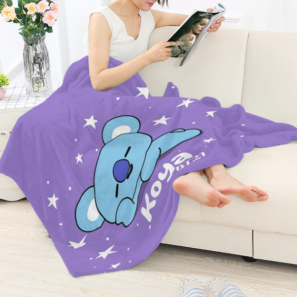 Shop the BT21 Koya Blanket Throw in a playful purple background. Cozy up with this adorable Koya design for a restful night's sleep.Keep cozy and warm during the colder months with this soft throw blanket. Suitable as a throw or bed cover, this blanket gives any bedroom or living room an instant refresh. Our soft cozy throw blanket is made of high quality polyester and coral fleece, which is super soft, lightweight, anti-wrinkle, and non-shedding. Features:- Suitable as a throw or bed cover- Available in multiple sizes- Made of polyester and coral fleece