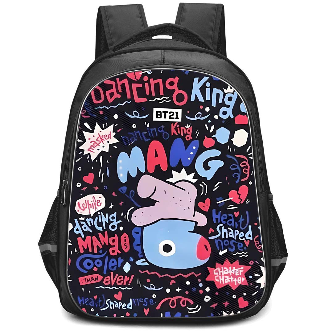 Shop the BT21 Mang Backpack StudentPack featuring Mang typography on a sleek black background. Great for students and fans alike.Our StudentPack is ultra durable and trendy, designed especially for students both young and old. Featuring one main compartment, a front compartment, and all of the space you could ever imagine. Durable and lightweight, the StudentPack is the perfect throw-on-and-go backpack for students.Features:- Roomy main compartment- Front compartment- 2 mesh pockets on both sides- Built to last, high quality waterproof oxford cloth- Adjustable padded shoulder straps- Front pocket with built in organizer- Padding on the back panel for superior comfort- Padded grab handle on top- High quality metal zips- 100% recycled undyed linerSpecifications:Fabric: 100% Polyester Oxford ClothCapacity: 15L (Small size) / 27L (Large size)Weight: 17.63 oz / 500gDimensions: Large size: 16.5" x 13" x 6.3" / 42 x 33 x 16 cmSmall size: 13" x 11" x 6.3" / 32 x 28 x 16 cm