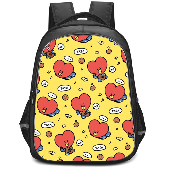 Get the trendy BT21 Tata Backpack StudentPack with a captivating guitar pattern on a vibrant yellow background. Perfect for students and fashion enthusiasts.Our StudentPack is ultra durable and trendy, designed especially for students both young and old. Featuring one main compartment, a front compartment, and all of the space you could ever imagine. Durable and lightweight, the StudentPack is the perfect throw-on-and-go backpack for students.Features:- Roomy main compartment- Front compartment- 2 mesh pockets on both sides- Built to last, high quality waterproof oxford cloth- Adjustable padded shoulder straps- Front pocket with built in organizer- Padding on the back panel for superior comfort- Padded grab handle on top- High quality metal zips- 100% recycled undyed linerSpecifications:Fabric: 100% Polyester Oxford ClothCapacity: 15L (Small size) / 27L (Large size)Weight: 17.63 oz / 500gDimensions: Large size: 16.5" x 13" x 6.3" / 42 x 33 x 16 cmSmall size: 13" x 11" x 6.3" / 32 x 28 x 16 cm