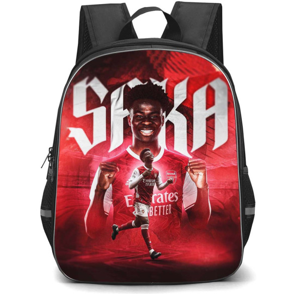 Shop the Bukayo Saka Backpack StudentPack featuring the iconic red background and exclusive portrait of Arsenal F.C. star Bukayo Saka. Perfect for any student or Arsenal fan seeking style and functionality in one!Our StudentPack is ultra durable and trendy, designed especially for students both young and old. Featuring one main compartment, a front compartment, and all of the space you could ever imagine. Durable and lightweight, the StudentPack is the perfect throw-on-and-go backpack for students.Features:- Roomy main compartment- Front compartment- 2 mesh pockets on both sides- Built to last, high quality waterproof oxford cloth- Adjustable padded shoulder straps- Front pocket with built in organizer- Padding on the back panel for superior comfort- Padded grab handle on top- High quality metal zips- 100% recycled undyed linerSpecifications:Fabric: 100% Polyester Oxford ClothCapacity: 15L (Small size) / 27L (Large size)Weight: 17.63 oz / 500gDimensions: Large size: 16.5" x 13" x 6.3" / 42 x 33 x 16 cmSmall size: 13" x 11" x 6.3" / 32 x 28 x 16 cm