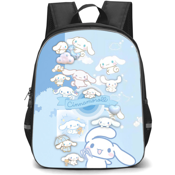 Shop the Cinammoroll Backpack StudentPack in Cinnamoroll Bluey Collage, the perfect accessory for students. Get yours today and enjoy stylish functionality and a cute design.Our StudentPack is ultra durable and trendy, designed especially for students both young and old. Featuring one main compartment, a front compartment, and all of the space you could ever imagine. Durable and lightweight, the StudentPack is the perfect throw-on-and-go backpack for students.Features:- Roomy main compartment- Front compartment- 2 mesh pockets on both sides- Built to last, high quality waterproof oxford cloth- Adjustable padded shoulder straps- Front pocket with built in organizer- Padding on the back panel for superior comfort- Padded grab handle on top- High quality metal zips- 100% recycled undyed linerSpecifications:Fabric: 100% Polyester Oxford ClothCapacity: 15L (Small size) / 27L (Large size)Weight: 17.63 oz / 500gDimensions: Large size: 16.5" x 13" x 6.3" / 42 x 33 x 16 cmSmall size: 13" x 11" x 6.3" / 32 x 28 x 16 cm