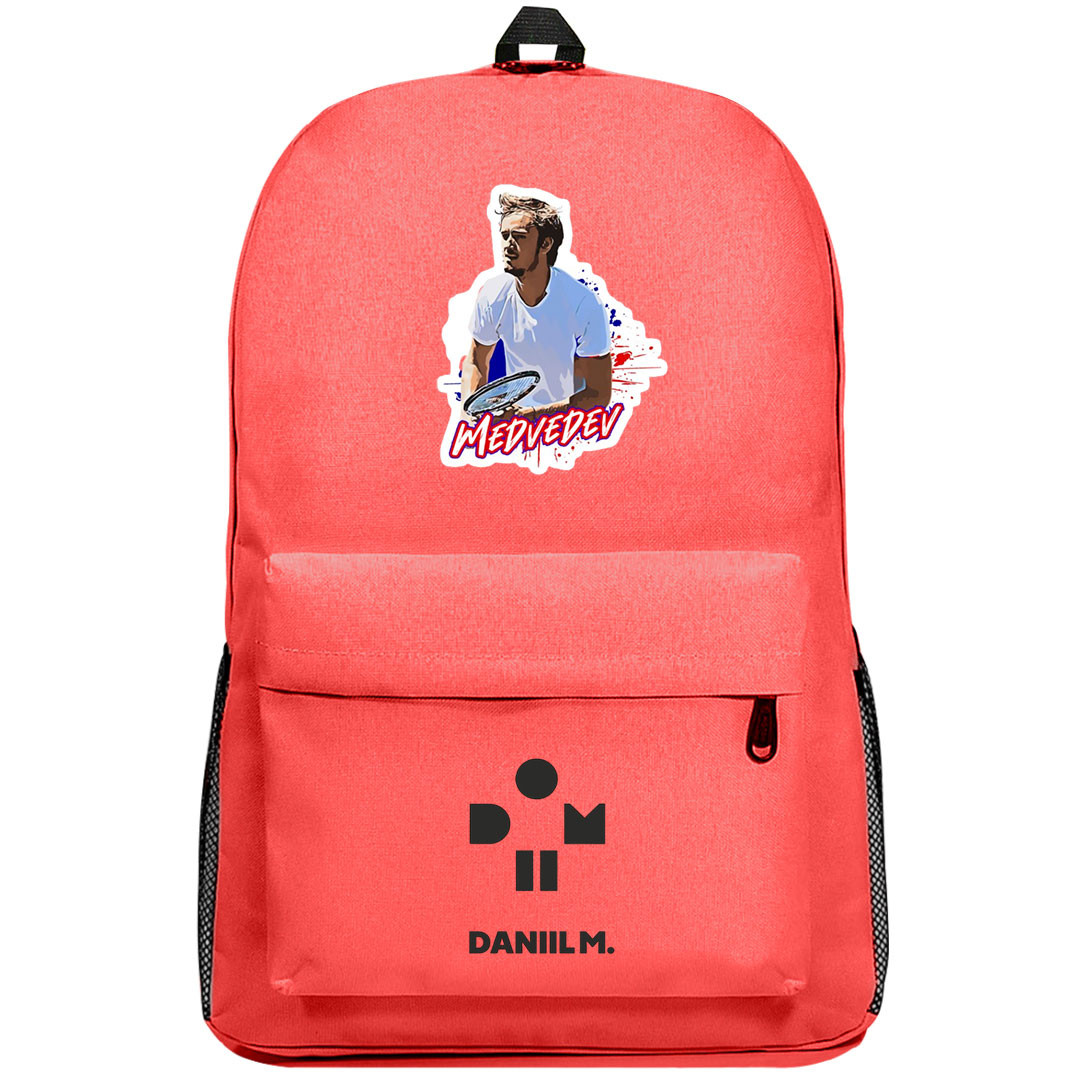 This stylish backpack is a must-have for all tennis enthusiasts. Designed with a vibrant watercolor style, it's perfect for carrying your essentials while showing off your love for Daniil Medvedev.Our SuperPack series backpacks are ultralight and perfect for everyday use. Featuring padded shoulder straps for extra comfort and support, and an organizer compartment to help keep all your little bits together. These backpacks are for those who want extra comfort, protection, and style. Features:- Roomy main compartment- Inner pocket within main compartment- Built to last, high quality polyester oxford cloth- Adjustable straight cut padded shoulder straps- Front pocket with built in organizer- Padding in center of back panel for superior comfort- Grab handle on top- Zipper pulls have cord tabs for easy grab access- 100% recycled undyed linerSpecifications:Fabric: 100% Polyester Fabric Oxford ClothCapacity Superpack: 1647 cu in / 27 LCapacity Plus: 1709 cu in / 28 LCapacity Pro: 1647 cu in / 27 LWeight Superpack: 14.1 oz / 400gWeight Plus: 17.53 oz / 500gWeight Pro: 14.1 oz / 400gDimensions Superpack: 17.7" x 12.2" x 7" / 45 x 31 x 18 cmDimensions Plus: 18.9" x 11.6" x 6.3" / 44 x 31 x 15 cmDimensions Pro: 17.3" x 11.8" x 6.3" / 44 x 30 x 16 cm