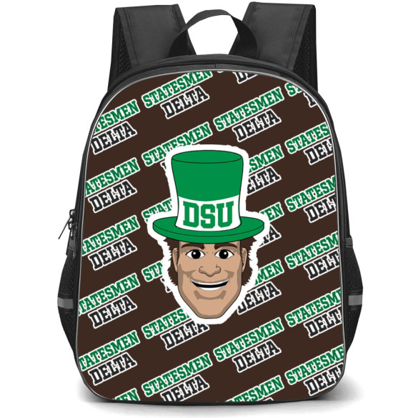 Shop the Delta State University Statesmen Backpack StudentPack, featuring the official Delta State University Statesmen College Football Medley Monogram Wordmark. Perfect for showing your team spirit on campus!Our StudentPack is ultra durable and trendy, designed especially for students both young and old. Featuring one main compartment, a front compartment, and all of the space you could ever imagine. Durable and lightweight, the StudentPack is the perfect throw-on-and-go backpack for students.Features:- Roomy main compartment- Front compartment- 2 mesh pockets on both sides- Built to last, high quality waterproof oxford cloth- Adjustable padded shoulder straps- Front pocket with built in organizer- Padding on the back panel for superior comfort- Padded grab handle on top- High quality metal zips- 100% recycled undyed linerSpecifications:Fabric: 100% Polyester Oxford ClothCapacity: 15L (Small size) / 27L (Large size)Weight: 17.63 oz / 500gDimensions: Large size: 16.5" x 13" x 6.3" / 42 x 33 x 16 cmSmall size: 13" x 11" x 6.3" / 32 x 28 x 16 cm