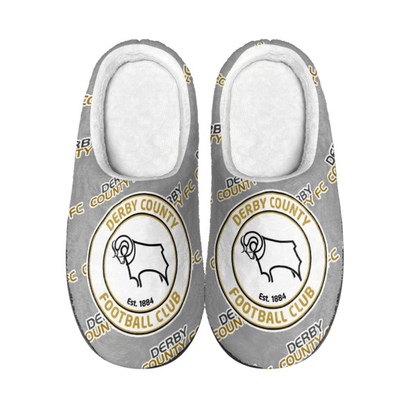 Shop the official Derby County FC Slippers featuring the iconic Derby Football Club Medley Monogram Wordmark. Perfect for any loyal fan to show their support in style.Keep cozy and warm during the colder months with these soft slippers. Perfect for keeping your toes toasty whilst lounging around. Shaped for a sleek and modern silhouette with minimalist styling. Warm, breathable and naturally odor resistant.Features:- Made from 100% polyester- Slip-on style- Grip sole