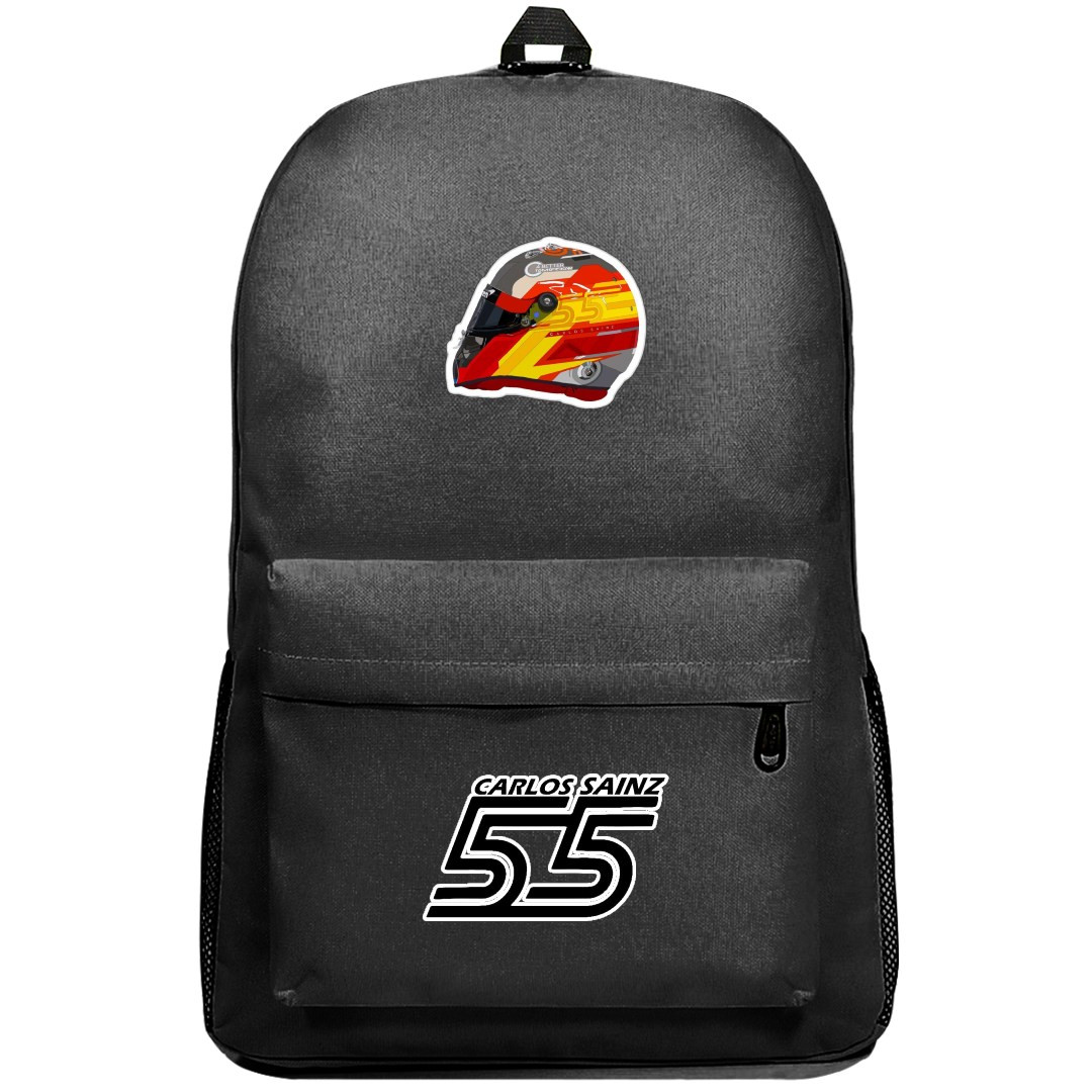 Shop the F1 Carlos Sainz Jr. Backpack SuperPack and elevate your style with this must-have accessory. Spice it up with the exclusive Helmet Sticker included.Our SuperPack series backpacks are ultralight and perfect for everyday use. Featuring padded shoulder straps for extra comfort and support, and an organizer compartment to help keep all your little bits together. These backpacks are for those who want extra comfort, protection, and style. Features:- Roomy main compartment- Inner pocket within main compartment- Built to last, high quality polyester oxford cloth- Adjustable straight cut padded shoulder straps- Front pocket with built in organizer- Padding in center of back panel for superior comfort- Grab handle on top- Zipper pulls have cord tabs for easy grab access- 100% recycled undyed linerSpecifications:Fabric: 100% Polyester Fabric Oxford ClothCapacity Superpack: 1647 cu in / 27 LCapacity Plus: 1709 cu in / 28 LCapacity Pro: 1647 cu in / 27 LWeight Superpack: 14.1 oz / 400gWeight Plus: 17.53 oz / 500gWeight Pro: 14.1 oz / 400gDimensions Superpack: 17.7" x 12.2" x 7" / 45 x 31 x 18 cmDimensions Plus: 18.9" x 11.6" x 6.3" / 44 x 31 x 15 cmDimensions Pro: 17.3" x 11.8" x 6.3" / 44 x 30 x 16 cm