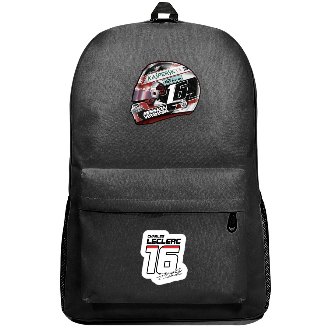 The F1 Charles Leclerc Backpack SuperPack offers a convenient and stylish solution for carrying your essentials while showcasing your love for racing. Complete with a helmet compartment, this backpack is a must-have for any Formula 1 fan.Our SuperPack series backpacks are ultralight and perfect for everyday use. Featuring padded shoulder straps for extra comfort and support, and an organizer compartment to help keep all your little bits together. These backpacks are for those who want extra comfort, protection, and style. Features:- Roomy main compartment- Inner pocket within main compartment- Built to last, high quality polyester oxford cloth- Adjustable straight cut padded shoulder straps- Front pocket with built in organizer- Padding in center of back panel for superior comfort- Grab handle on top- Zipper pulls have cord tabs for easy grab access- 100% recycled undyed linerSpecifications:Fabric: 100% Polyester Fabric Oxford ClothCapacity Superpack: 1647 cu in / 27 LCapacity Plus: 1709 cu in / 28 LCapacity Pro: 1647 cu in / 27 LWeight Superpack: 14.1 oz / 400gWeight Plus: 17.53 oz / 500gWeight Pro: 14.1 oz / 400gDimensions Superpack: 17.7" x 12.2" x 7" / 45 x 31 x 18 cmDimensions Plus: 18.9" x 11.6" x 6.3" / 44 x 31 x 15 cmDimensions Pro: 17.3" x 11.8" x 6.3" / 44 x 30 x 16 cm