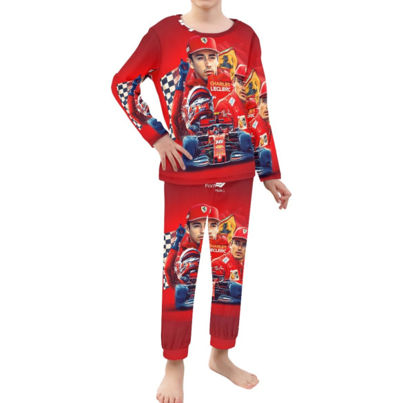 Shop the F1 Formula One Charles Leclerc Pajamas Pyjamas and celebrate the thrilling Charles Leclerc F1 Season In Ferrari with the iconic Red Background poster. A perfect addition to any racing enthusiast's collection.Bring a cozy feel to bedtime with these long-sleeved cotton-rich pajamas designed in a fun print. Top and bottom set, skinny fit, with added stretch for comfort and an easy elasticated waist.Features:- Made from 100% cotton knit jersey- Machine washable. Launder with like colors- Long-sleeved top and matching pants