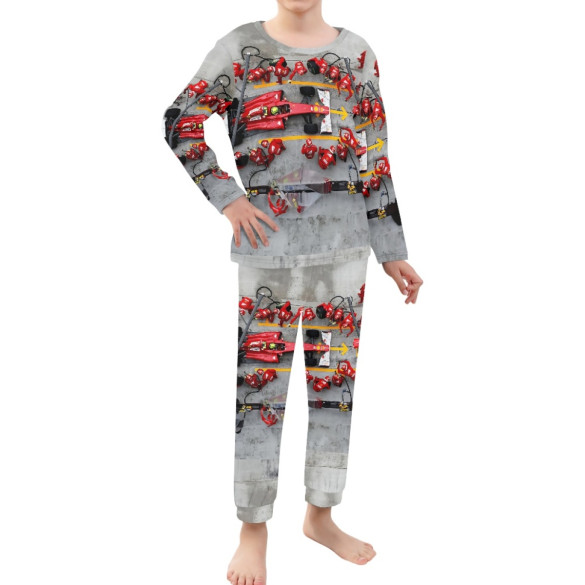 Shop for official F1 Ferrari pajamas featuring the iconic Formula One design. Complete your collection with the Ferrari Formula 1 pit crew poster for an ultimate fan experience.Bring a cozy feel to bedtime with these long-sleeved cotton-rich pajamas designed in a fun print. Top and bottom set, skinny fit, with added stretch for comfort and an easy elasticated waist.Features:- Made from 100% cotton knit jersey- Machine washable. Launder with like colors- Long-sleeved top and matching pants