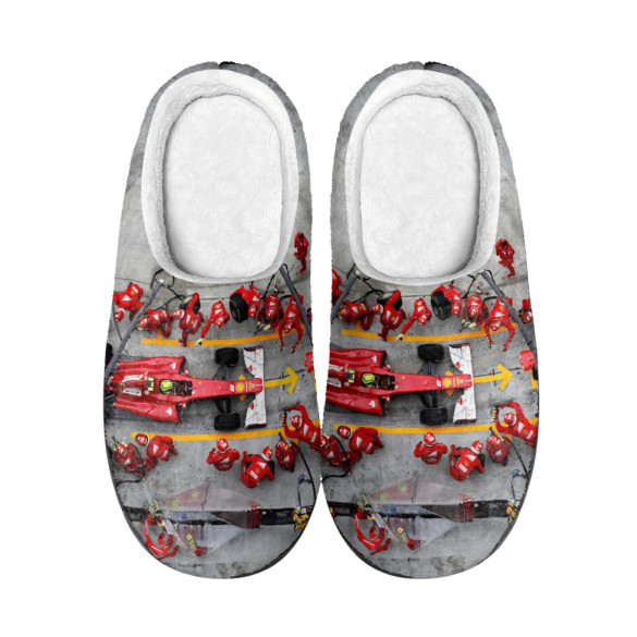 Step into the fast lane with these F1 Formula One Ferrari Slippers, featuring the iconic Ferrari logo. Complete your collection with the Ferrari Formula 1 Pit Crew Poster for a touch of automotive excitement.Keep cozy and warm during the colder months with these soft slippers. Perfect for keeping your toes toasty whilst lounging around. Shaped for a sleek and modern silhouette with minimalist styling. Warm, breathable and naturally odor resistant.Features:- Made from 100% polyester- Slip-on style- Grip sole