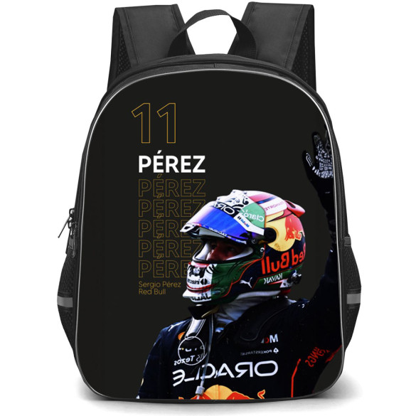 Get the ultimate F1 Formula One backpack featuring Sergio Perez's iconic side portrait in his racing suit. Perfect for students and race enthusiasts alike.Our StudentPack is ultra durable and trendy, designed especially for students both young and old. Featuring one main compartment, a front compartment, and all of the space you could ever imagine. Durable and lightweight, the StudentPack is the perfect throw-on-and-go backpack for students.Features:- Roomy main compartment- Front compartment- 2 mesh pockets on both sides- Built to last, high quality waterproof oxford cloth- Adjustable padded shoulder straps- Front pocket with built in organizer- Padding on the back panel for superior comfort- Padded grab handle on top- High quality metal zips- 100% recycled undyed linerSpecifications:Fabric: 100% Polyester Oxford ClothCapacity: 15L (Small size) / 27L (Large size)Weight: 17.63 oz / 500gDimensions: Large size: 16.5" x 13" x 6.3" / 42 x 33 x 16 cmSmall size: 13" x 11" x 6.3" / 32 x 28 x 16 cm