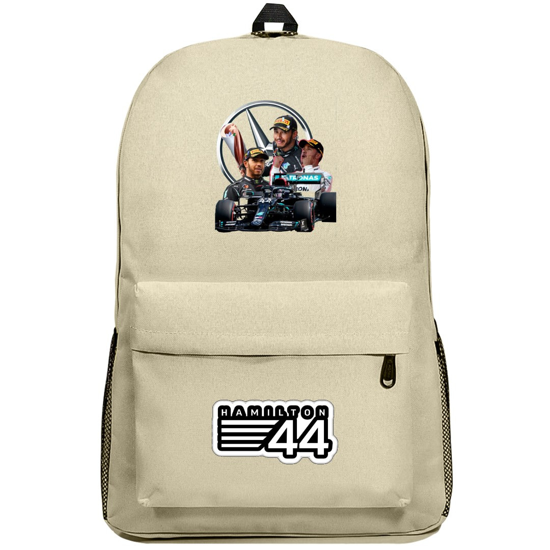 The F1 Lewis Hamilton Backpack SuperPack featuring an exclusive race poster is the ultimate accessory for motorsport enthusiasts. Carry your belongings in style with this high-quality, versatile backpack.Our SuperPack series backpacks are ultralight and perfect for everyday use. Featuring padded shoulder straps for extra comfort and support, and an organizer compartment to help keep all your little bits together. These backpacks are for those who want extra comfort, protection, and style. Features:- Roomy main compartment- Inner pocket within main compartment- Built to last, high quality polyester oxford cloth- Adjustable straight cut padded shoulder straps- Front pocket with built in organizer- Padding in center of back panel for superior comfort- Grab handle on top- Zipper pulls have cord tabs for easy grab access- 100% recycled undyed linerSpecifications:Fabric: 100% Polyester Fabric Oxford ClothCapacity Superpack: 1647 cu in / 27 LCapacity Plus: 1709 cu in / 28 LCapacity Pro: 1647 cu in / 27 LWeight Superpack: 14.1 oz / 400gWeight Plus: 17.53 oz / 500gWeight Pro: 14.1 oz / 400gDimensions Superpack: 17.7" x 12.2" x 7" / 45 x 31 x 18 cmDimensions Plus: 18.9" x 11.6" x 6.3" / 44 x 31 x 15 cmDimensions Pro: 17.3" x 11.8" x 6.3" / 44 x 30 x 16 cm