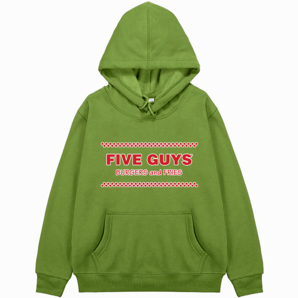 Stay warm and stylish in this Five Guys hoodie featuring the retro logo from 1986-2005. Perfect for fans of the iconic burger chain.This hoodie is made from a blend of cotton and polyester. Relaxed fit with a jersey-lined, drawstring hood, a kangaroo pocket, long sleeves and wide ribbing at the cuffs and hem. Soft brushed inside.Features:- Rib-knit cuffs and waistband for stretchability- Double-lined hood and color-matched drawcord- Side-seamed- Pouch pocket- Pullover type