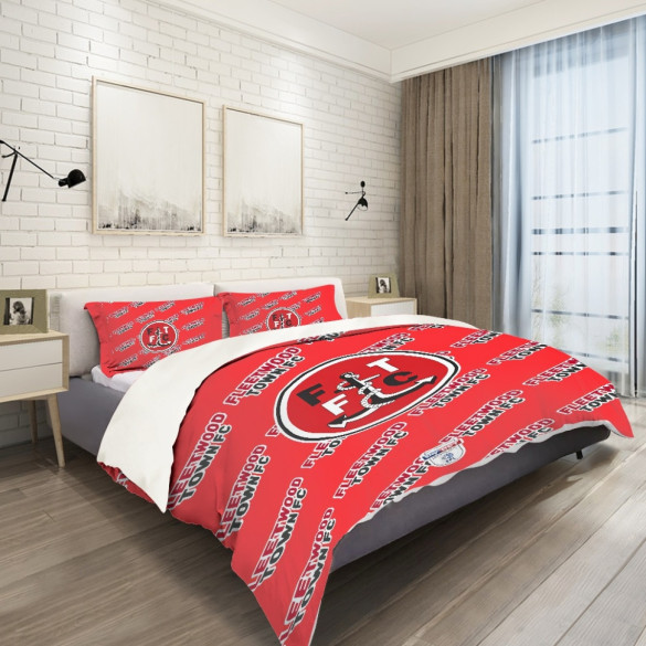 Upgrade your bedroom with the Fleetwood Town FC Comforter Sham Set Bed Set Sheet Cover featuring the iconic Fleetwood Football Club Medley Monogram Wordmark. Elevate your sleep experience with this stylish and comfortable bedding set.Our sheets have high quality printing. The colors are guaranteed to last. Made with reinforced stitching, super durable. Our comforter and pill covers are soft, comfortable and easy to clean.Features:- 100% Polyester. Anti-wrinkle- Contains 1 x comforter cover, 2 x pillow cases- Machine wash cold separately using delicate cycle and mild detergent - Comes in 3 SizesTwin: 68x88 inches, 173 x 224 cmQueen/Full: 88x88, 224 x 224 cmKing: 104 x 88, 264 x 224 cm