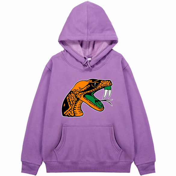 Stay warm and show off your support for the Florida A&M University Rattlers with this stylish hoodie sweatshirt jacket featuring their college football team's single logo. Perfect for game days or casual wear, this jacket is a must-have for any fan.This hoodie is made from a blend of cotton and polyester. Relaxed fit with a jersey-lined, drawstring hood, a kangaroo pocket, long sleeves and wide ribbing at the cuffs and hem. Soft brushed inside.Features:- Rib-knit cuffs and waistband for stretchability- Double-lined hood and color-matched drawcord- Side-seamed- Pouch pocket- Pullover type