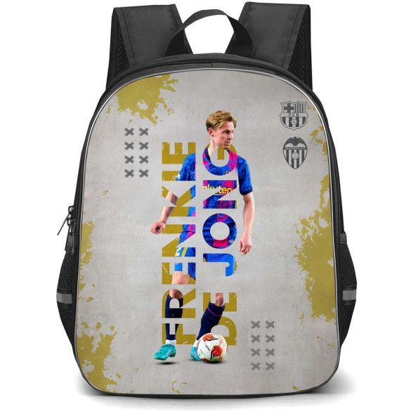 Get ready to show off your love for Frenkie de Jong and FC Barcelona with our Frenkie de Jong Backpack StudentPack. Featuring a unique Dribbling Word Art design, this backpack is a must-have for any soccer fan.Our StudentPack is ultra durable and trendy, designed especially for students both young and old. Featuring one main compartment, a front compartment, and all of the space you could ever imagine. Durable and lightweight, the StudentPack is the perfect throw-on-and-go backpack for students.Features:- Roomy main compartment- Front compartment- 2 mesh pockets on both sides- Built to last, high quality waterproof oxford cloth- Adjustable padded shoulder straps- Front pocket with built in organizer- Padding on the back panel for superior comfort- Padded grab handle on top- High quality metal zips- 100% recycled undyed linerSpecifications:Fabric: 100% Polyester Oxford ClothCapacity: 15L (Small size) / 27L (Large size)Weight: 17.63 oz / 500gDimensions: Large size: 16.5" x 13" x 6.3" / 42 x 33 x 16 cmSmall size: 13" x 11" x 6.3" / 32 x 28 x 16 cm