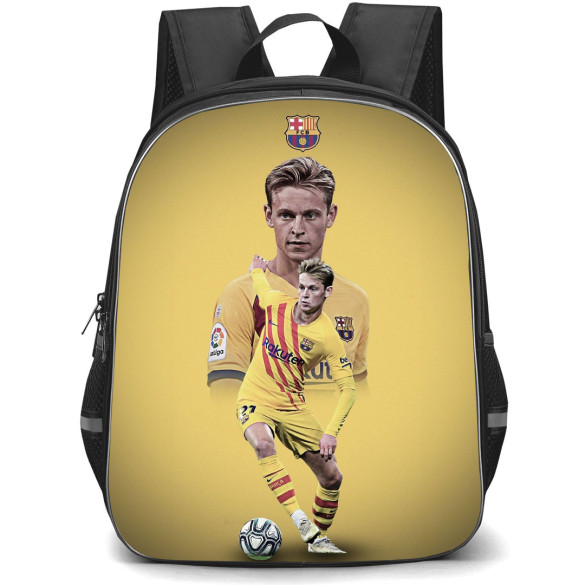 Get the Frenkie de Jong Backpack StudentPack featuring the FC Barcelona star's name and vibrant yellow background. Perfect for students who want to show off their love for Frenkie de Jong and their favorite football club.Our StudentPack is ultra durable and trendy, designed especially for students both young and old. Featuring one main compartment, a front compartment, and all of the space you could ever imagine. Durable and lightweight, the StudentPack is the perfect throw-on-and-go backpack for students.Features:- Roomy main compartment- Front compartment- 2 mesh pockets on both sides- Built to last, high quality waterproof oxford cloth- Adjustable padded shoulder straps- Front pocket with built in organizer- Padding on the back panel for superior comfort- Padded grab handle on top- High quality metal zips- 100% recycled undyed linerSpecifications:Fabric: 100% Polyester Oxford ClothCapacity: 15L (Small size) / 27L (Large size)Weight: 17.63 oz / 500gDimensions: Large size: 16.5" x 13" x 6.3" / 42 x 33 x 16 cmSmall size: 13" x 11" x 6.3" / 32 x 28 x 16 cm