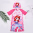 Girls Sofia Swimsuit. Princess Sofia is the main character of Sofia the First, a Disney Junior TV series. She came initially from a commoner background until her mother married the King. That is how Sofia became Princess Sofia. Sofia is kind, compassionate, loyal and believes in keeping promises. She is a loving person that love to give hugs. Sofia can also be hard headed and skeptical if she wants to be. Here we have a one piece Girls Sofia swimsuit with Sofia pictured in front of a pink background. Beautifully designed, excellent workmanship, fashionable and creative, this is a must have swimsuit for all kinds of beach or swimming activities.