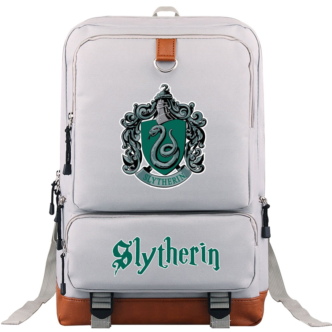 Enhance your Harry Potter collection with this stylish triple pack containing a unique Slytherin Backpack featuring a Slytherin Crest Sticker Art. Explore the magical world in style with this must-have accessory.The TriplePack has many compartments with some premium upgrades. Featuring a dedicated laptop compartment, padded shoulder straps, and a premium suede leather bottom and tags. The TriplePack is truly a fit for many.Features:- Roomy main compartment- Zippered pockets on each side- 2 large front compartments- Front pocket has built in organizer - Contains zipper hood protector- Built to last, high quality polyester and leather bottom- Adjustable straight cut padded shoulder straps- Padding on back panel for superior comfort- Grab handle on top- Zipper pulls have cord tabs for easy grab access- 100% recycled undyed linerSpecifications:Fabric: 100% Polyester Oxford Cloth, LeatherCapacity: 2100 cu in / 34 LWeight: 1 lb 5 oz / 600 gDimensions: 17.3" x 11.4" x 7" / 44 x 29 x 18 cm