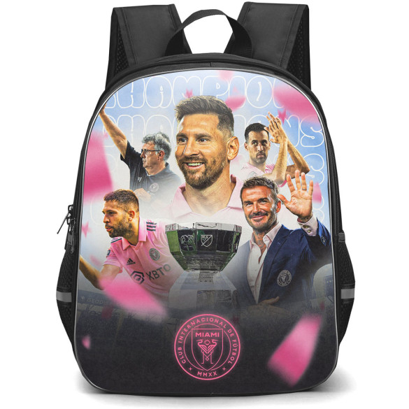 Introducing the Inter Miami CF Backpack StudentPack - a logo-infused trophy poster for true soccer enthusiasts. Transition effortlessly from the classroom to the field with this trendy and functional backpack.Our StudentPack is ultra durable and trendy, designed especially for students both young and old. Featuring one main compartment, a front compartment, and all of the space you could ever imagine. Durable and lightweight, the StudentPack is the perfect throw-on-and-go backpack for students.Features:- Roomy main compartment- Front compartment- 2 mesh pockets on both sides- Built to last, high quality waterproof oxford cloth- Adjustable padded shoulder straps- Front pocket with built in organizer- Padding on the back panel for superior comfort- Padded grab handle on top- High quality metal zips- 100% recycled undyed linerSpecifications:Fabric: 100% Polyester Oxford ClothCapacity: 15L (Small size) / 27L (Large size)Weight: 17.63 oz / 500gDimensions: Large size: 16.5" x 13" x 6.3" / 42 x 33 x 16 cmSmall size: 13" x 11" x 6.3" / 32 x 28 x 16 cm
