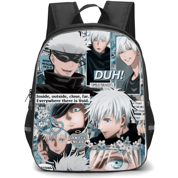 Shop the Jujutsu Kaisen Gojo Satoru Backpack StudentPack in the vibrant Gojo Satoru Blue Collage design. Stay stylish and organized with this must-have backpack for students.Our StudentPack is ultra durable and trendy, designed especially for students both young and old. Featuring one main compartment, a front compartment, and all of the space you could ever imagine. Durable and lightweight, the StudentPack is the perfect throw-on-and-go backpack for students.Features:- Roomy main compartment- Front compartment- 2 mesh pockets on both sides- Built to last, high quality waterproof oxford cloth- Adjustable padded shoulder straps- Front pocket with built in organizer- Padding on the back panel for superior comfort- Padded grab handle on top- High quality metal zips- 100% recycled undyed linerSpecifications:Fabric: 100% Polyester Oxford ClothCapacity: 15L (Small size) / 27L (Large size)Weight: 17.63 oz / 500gDimensions: Large size: 16.5" x 13" x 6.3" / 42 x 33 x 16 cmSmall size: 13" x 11" x 6.3" / 32 x 28 x 16 cm