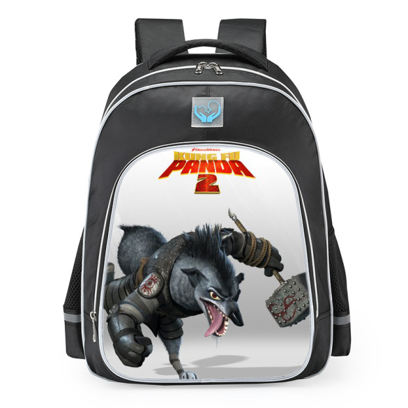 Kung Fu Panda 2 Wolf Boss School Backpack. Daypacks designed for comfortable all-day carrying with our straight-cut padded shoulder straps, padded back panel & a web haul handle.Size Inches: 12x8x16.5 (Width x Depth x Height)Size cm: 30x20x42 (Width x Depth x Height) Volume: 27LFabric: 100% Polyester Oxford ClothWeight: 460gIf you're interested in customization or making your own backpack, please click the DIY icon at the top of our site.