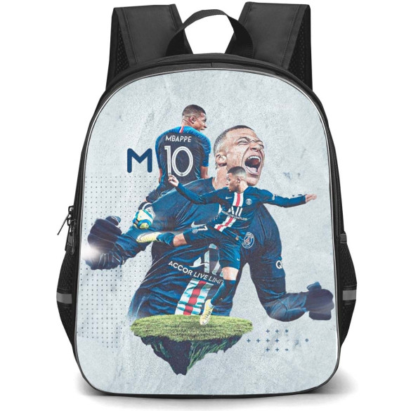 Shop the Kylian Mbappe Backpack StudentPack featuring a stunning Paris Saint-Germain Celebration Poster on a sleek gray background. Perfect for fans of the iconic football star.Our StudentPack is ultra durable and trendy, designed especially for students both young and old. Featuring one main compartment, a front compartment, and all of the space you could ever imagine. Durable and lightweight, the StudentPack is the perfect throw-on-and-go backpack for students.Features:- Roomy main compartment- Front compartment- 2 mesh pockets on both sides- Built to last, high quality waterproof oxford cloth- Adjustable padded shoulder straps- Front pocket with built in organizer- Padding on the back panel for superior comfort- Padded grab handle on top- High quality metal zips- 100% recycled undyed linerSpecifications:Fabric: 100% Polyester Oxford ClothCapacity: 15L (Small size) / 27L (Large size)Weight: 17.63 oz / 500gDimensions: Large size: 16.5" x 13" x 6.3" / 42 x 33 x 16 cmSmall size: 13" x 11" x 6.3" / 32 x 28 x 16 cm