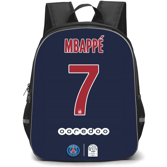 Get the Kylian Mbappe Backpack StudentPack, a stylish and functional backpack featuring the iconic Kylian Mbappe Paris Saint-Germain No. 7 Jersey design. Ideal for students on the go.Our StudentPack is ultra durable and trendy, designed especially for students both young and old. Featuring one main compartment, a front compartment, and all of the space you could ever imagine. Durable and lightweight, the StudentPack is the perfect throw-on-and-go backpack for students.Features:- Roomy main compartment- Front compartment- 2 mesh pockets on both sides- Built to last, high quality waterproof oxford cloth- Adjustable padded shoulder straps- Front pocket with built in organizer- Padding on the back panel for superior comfort- Padded grab handle on top- High quality metal zips- 100% recycled undyed linerSpecifications:Fabric: 100% Polyester Oxford ClothCapacity: 15L (Small size) / 27L (Large size)Weight: 17.63 oz / 500gDimensions: Large size: 16.5" x 13" x 6.3" / 42 x 33 x 16 cmSmall size: 13" x 11" x 6.3" / 32 x 28 x 16 cm