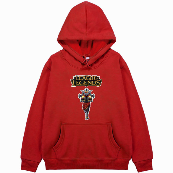 Get ready to show off your gaming love with this League of Legends Zed Hoodie! This hooded sweatshirt features a stunning standing portrait chibi art of Zed, perfect for any fan.This hoodie is made from a blend of cotton and polyester. Relaxed fit with a jersey-lined, drawstring hood, a kangaroo pocket, long sleeves and wide ribbing at the cuffs and hem. Soft brushed inside.Features:- Rib-knit cuffs and waistband for stretchability- Double-lined hood and color-matched drawcord- Side-seamed- Pouch pocket- Pullover type