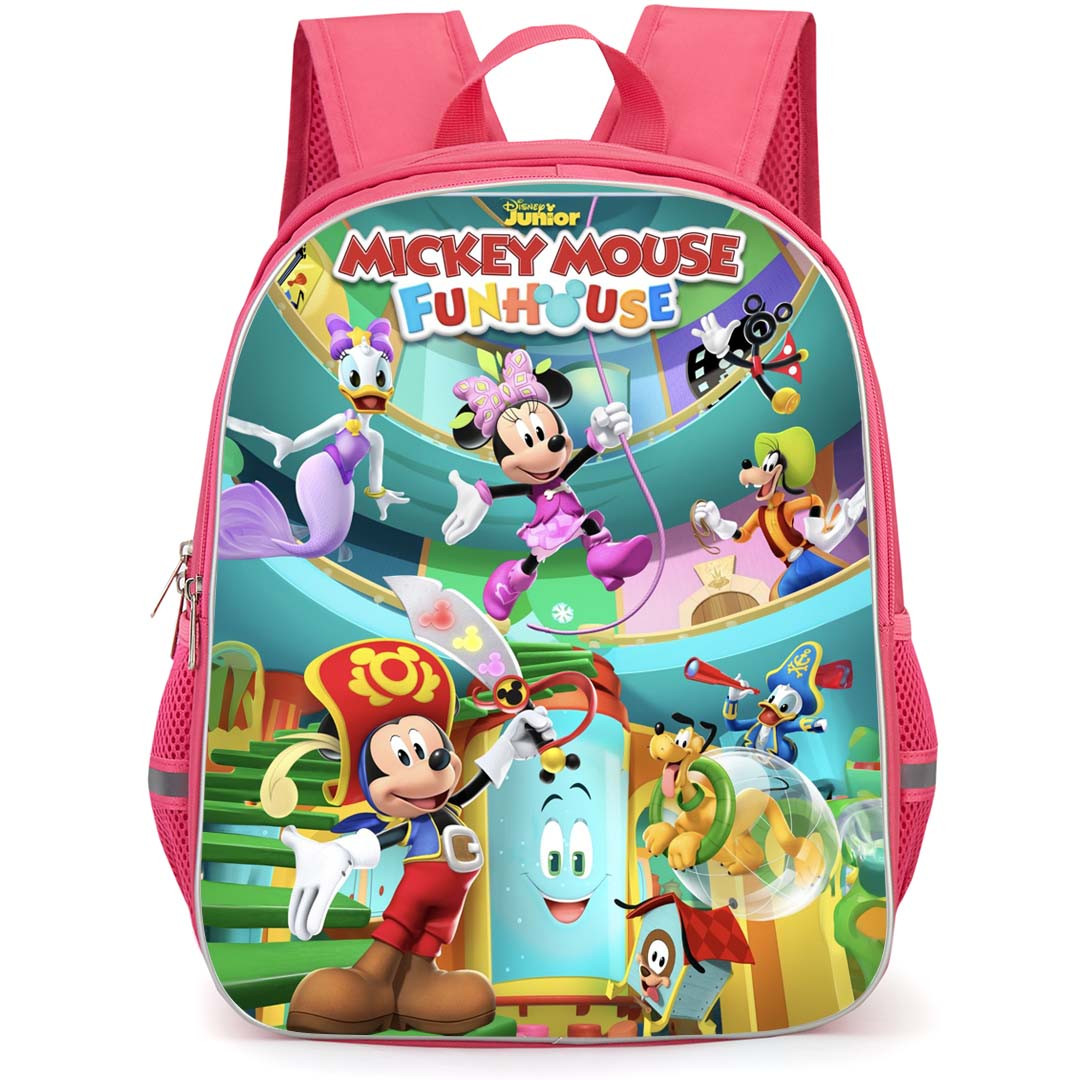 Get ready for adventure with the Mickey Mouse Funhouse Backpack StudentPack! Inspired by the beloved Mickey Mouse Funhouse TV Series, this cool backpack exudes style and functionality.Our StudentPack is ultra durable and trendy, designed especially for students both young and old. Featuring one main compartment, a front compartment, and all of the space you could ever imagine. Durable and lightweight, the StudentPack is the perfect throw-on-and-go backpack for students.Features:- Roomy main compartment- Front compartment- 2 mesh pockets on both sides- Built to last, high quality waterproof oxford cloth- Adjustable padded shoulder straps- Front pocket with built in organizer- Padding on the back panel for superior comfort- Padded grab handle on top- High quality metal zips- 100% recycled undyed linerSpecifications:Fabric: 100% Polyester Oxford ClothCapacity: 15L (Small size) / 27L (Large size)Weight: 17.63 oz / 500gDimensions: Large size: 16.5" x 13" x 6.3" / 42 x 33 x 16 cmSmall size: 13" x 11" x 6.3" / 32 x 28 x 16 cm